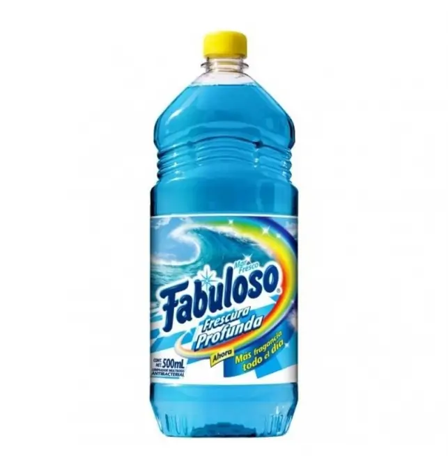 Modo de uso: Para limpieza general de pisos y superficies, diluye un chorrito de Fabuloso en media cubeta de agua (aprox. 5 litros). Para eliminar manchas difíciles o realizar una desinfección profunda, aplica el producto directamente sobre la superficie o una esponja y limpia como de costumbre.