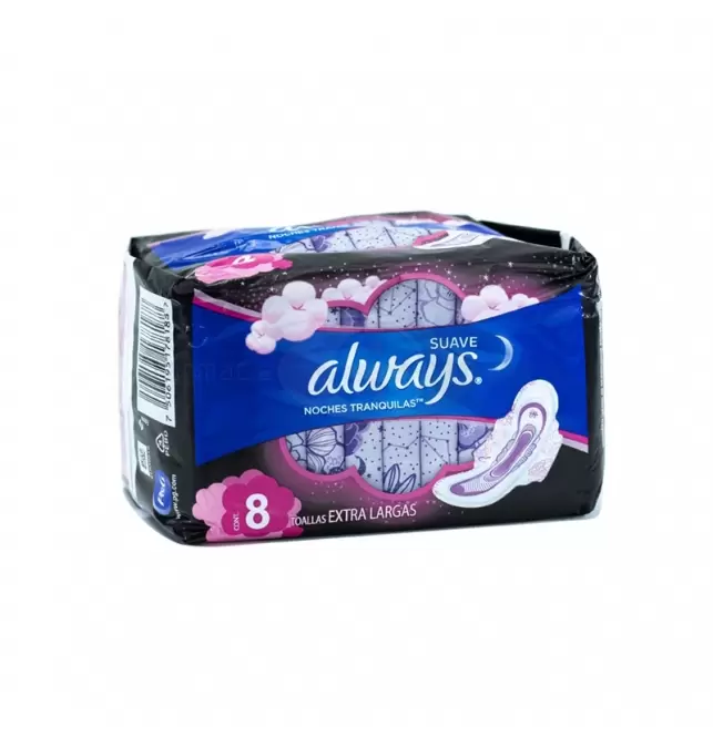 TOALLAS SANITARIAS ALWAYS NOCHE CON ALAS CON 8 PIEZAS.