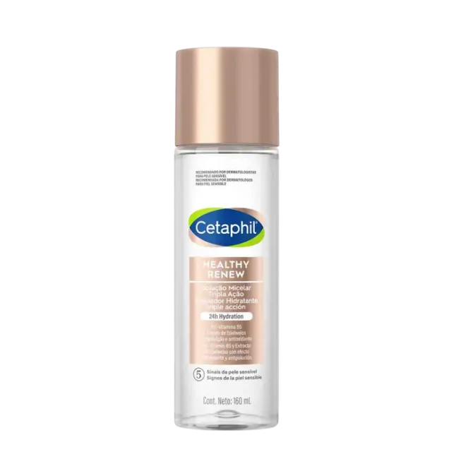 ¿Para que sirve Cetaphil Healthy Renew Limpiador Hidratante? El CETAPHIL HEALTHY RENEW LIMPIADOR HIDRATANTE TRIPLE ACCIÓN está indicado para la limpieza profunda de la piel del rostro, removiendo eficazmente suciedad, maquillaje y filtros solares, tanto minerales como químicos. Su fórmula ayuda a mejorar la calidad de la piel, refinando la textura y aumentando la luminosidad, elasticidad y firmeza. Además, proporciona hidratación hasta por 24 horas, suavizando la piel sensible y protegiéndola contra el estrés oxidativo.