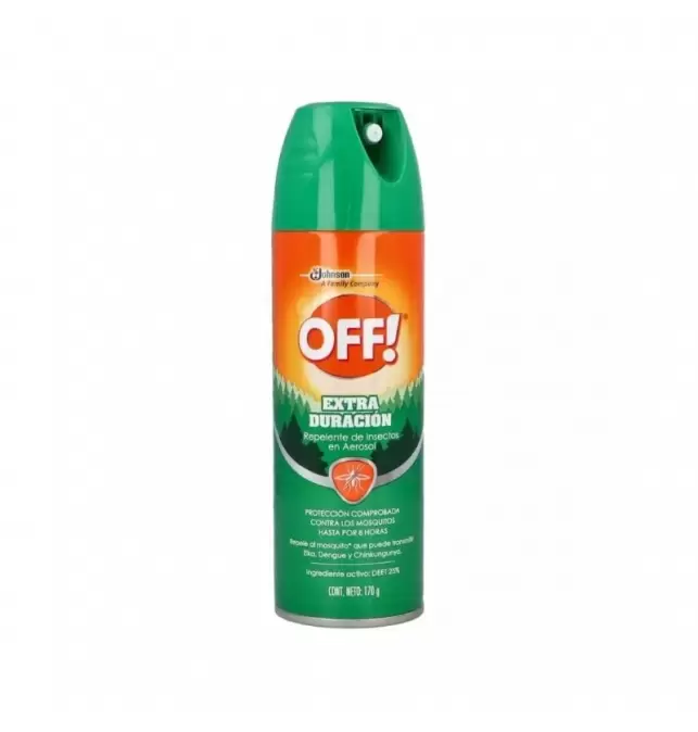 Repelente en aerosol; Fácil aplicación; Protección comprobada contra los mosquitos hasta por 8 horas; Ideal para ser utilizado en momentos de alta exposición a los insectos; Protección continúa contra los mosquitos que pueden transmitir Dengue, Zika y Chikungunya.