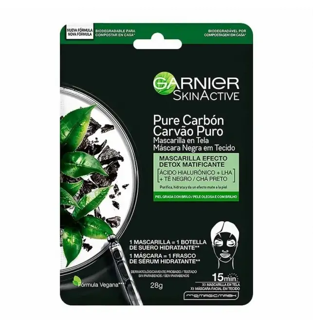 La Mascarilla Garnier Pure Carbón Té Negro 28 g es una solución innovadora diseñada para quienes buscan un tratamiento intensivo contra las impurezas y el exceso de sebo. Enriquecida con el poder purificador del carbón activo y las propiedades revitalizantes del té negro, esta mascarilla ofrece una experiencia detoxificante única. Al aplicarla, su fórmula actúa como un imán que atrae la suciedad, las toxinas y las partículas de contaminación, dejando la piel profundamente limpia, tonificada y visiblemente más saludable. Ideal para sesiones de cuidado personal, esta mascarilla transformará tu rutina de belleza, revelando una piel más suave, fresca y con poros menos visibles tras cada uso.