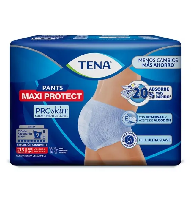 • CALZON TENA PANTS MAXI PROTECT TAMAÑO CHICO-MEDIANA CON 13 PIEZAS