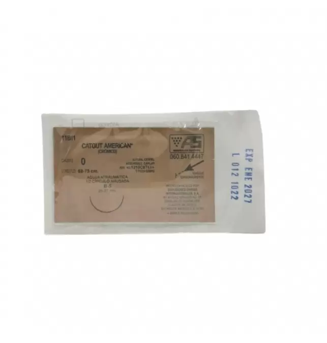 SUTURA CALIBRE 0 B-5 25-27 MM CATGUT AMERICAN CROMICO 11BI1 1 PIEZA