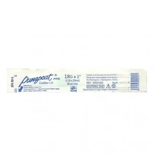 ¿Para qué sirve el Catéter Punzocat N. 18? Este dispositivo está diseñado para lograr un acceso rápido y seguro al sistema venoso, permitiendo administrar medicamentos, soluciones y otros tratamientos de forma directa en la vena. Su calibre 18, más ancho que otros modelos, es ideal para procedimientos que requieren un flujo más rápido de líquidos o transfusiones de sangre. Gracias a su diseño de inserción suave y precisa, ayuda a minimizar molestias y complicaciones durante el procedimiento.