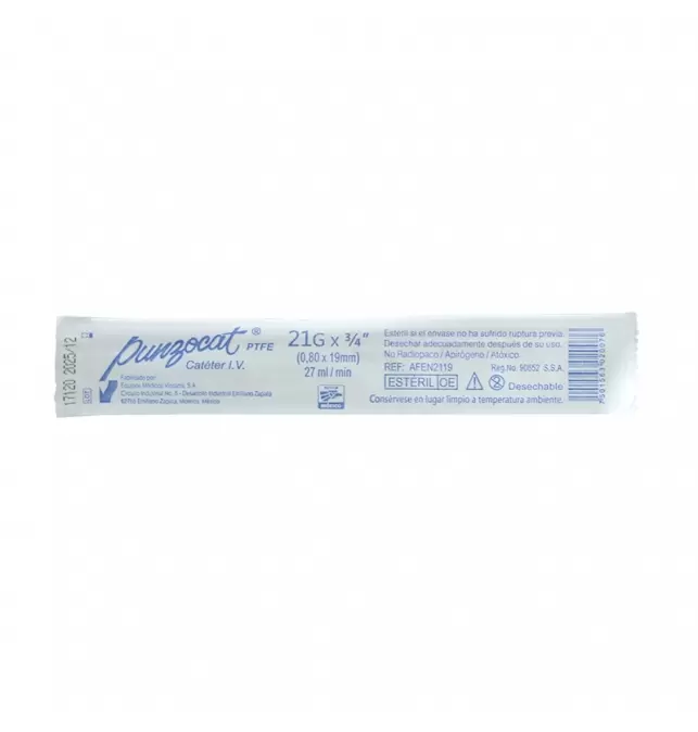 Punzocat es un catéter intravenoso periférico que sirve para llevar a cabo la transfusión de diferentes soluciones medicinales y sanguíneas. El catéter punzocat es un dispositivo con forma de tubo delgado y flexible que es introducido dentro de la vena en la parte inferior del brazo.
