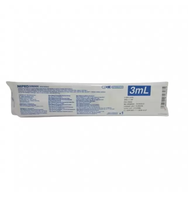 Jeringa De Plástico Desechable Amarilla Con Aguja 0.9 X 32 Mm 3Ml