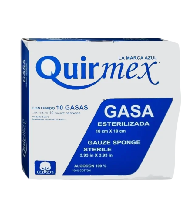 ¿Para qué sirve la Gasa Estéril Quirmex 10 x 10 cm con 10 piezas? Este material de curación es ideal para cubrir y proteger heridas de todo tipo, evitando el contacto con el medio externo y ayudando a prevenir infecciones. Gracias a su tejido que permite el paso del aire, favorece la ventilación de la piel y contribuye a una mejor cicatrización. Su tamaño de 10 x 10 cm es práctico para diferentes tipos de lesiones, y al venir esterilizada con Óxido de Etileno, garantiza un uso seguro en procedimientos médicos y curaciones domiciliarias.