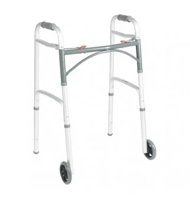 La Andadera de Aluminio Con Ruedas 10210-4 es ideal para personas que requieren asistencia adicional para la movilidad, especialmente útil durante procesos de rehabilitación o para aquellos con limitaciones permanentes de movilidad. Fabricada con aluminio anodizado extruido, esta andadera combina ligereza con resistencia, facilitando su manejo sin sacrificar durabilidad. El mecanismo de plegado de dos botones permite un fácil almacenamiento y transporte, y su diseño permite que cada lado se pliegue independientemente, favoreciendo la movilidad en espacios reducidos mientras se mantiene la estabilidad necesaria. La altura de la andadera es ajustable en 8 niveles, lo que permite adaptarla a la estatura del usuario, y las ruedas delanteras de 5 pulgadas junto con los deslizadores traseros aseguran una movilidad eficiente en la mayoría de las superficies.