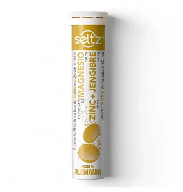 Ver más Ver menosNo se recomienda el uso de Seltz Magnesio + Zinc + Jengibre en personas con hipersensibilidad o alergia a alguno de sus componentes. Tampoco debe ser utilizado por personas con enfermedades renales graves, sin supervisión médica, ya que el magnesio puede acumularse en el organismo. En caso de molestias gastrointestinales, como diarrea o malestar estomacal, se debe suspender su uso y consultar a un profesional de la salud.
