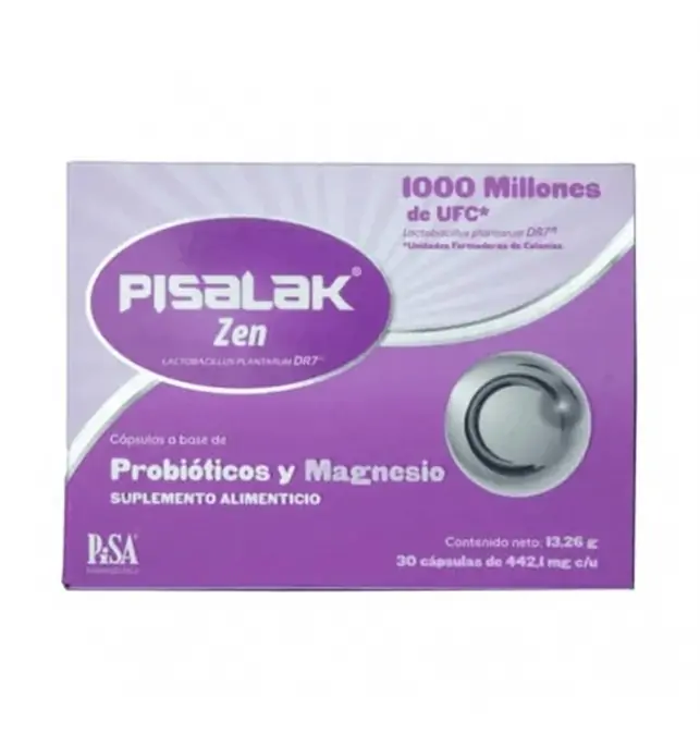 ¿Para qué sirve Pisalak Zen 1000 millones UFC 30 cápsulas? Este suplemento combina probióticos con magnesio, lo que lo convierte en un gran aliado para mantener el equilibrio de la flora intestinal y favorecer una digestión más saludable. Los probióticos ayudan a reforzar la salud digestiva y el sistema inmunológico, mientras que el magnesio contribuye al buen funcionamiento muscular, nervioso y energético. Es ideal para personas que buscan mejorar su bienestar intestinal y sentirse con más vitalidad en su día a día.