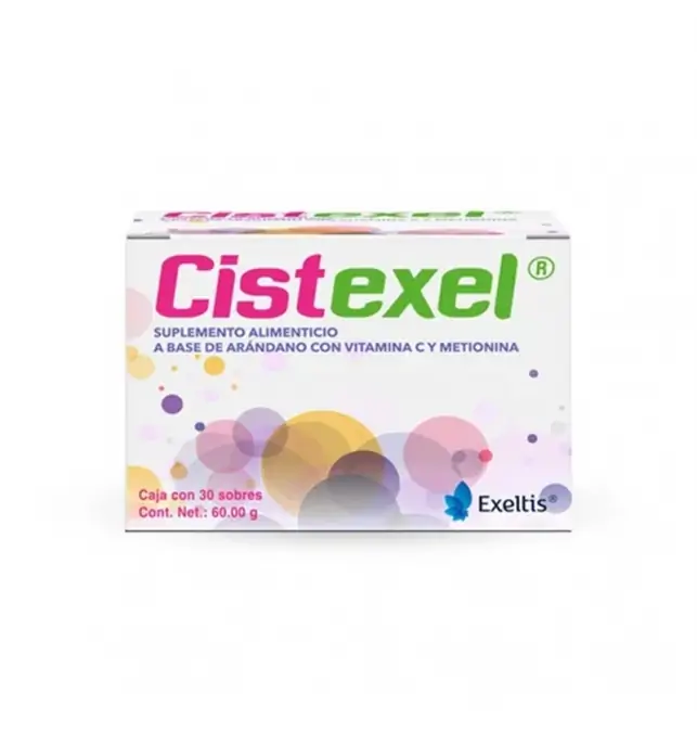 Ver más Ver menosEl consumo de Cistexel no está recomendado en personas que presenten alergia o hipersensibilidad a alguno de sus componentes. Tampoco se sugiere su uso en menores de edad, salvo indicación expresa de un médico. Como con cualquier suplemento, no se debe exceder la dosis recomendada (1 sobre al día), ya que un exceso podría alterar el balance nutrimental esperado.