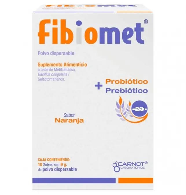 ¿Para qué sirve Fibiomet suplemento alimenticio sabor naranja 10 sobres? Este producto está diseñado para complementar la alimentación gracias a su mezcla de fibra y probióticos como Bacillus coagulans, que ayudan a mantener un equilibrio saludable en la flora intestinal y mejorar la digestión. Además, su aporte de fibra contribuye a un tránsito intestinal más regular, lo que lo hace útil en personas que buscan cuidar su salud digestiva. Su presentación en sobres sabor naranja lo convierte en una opción práctica y agradable de consumir.