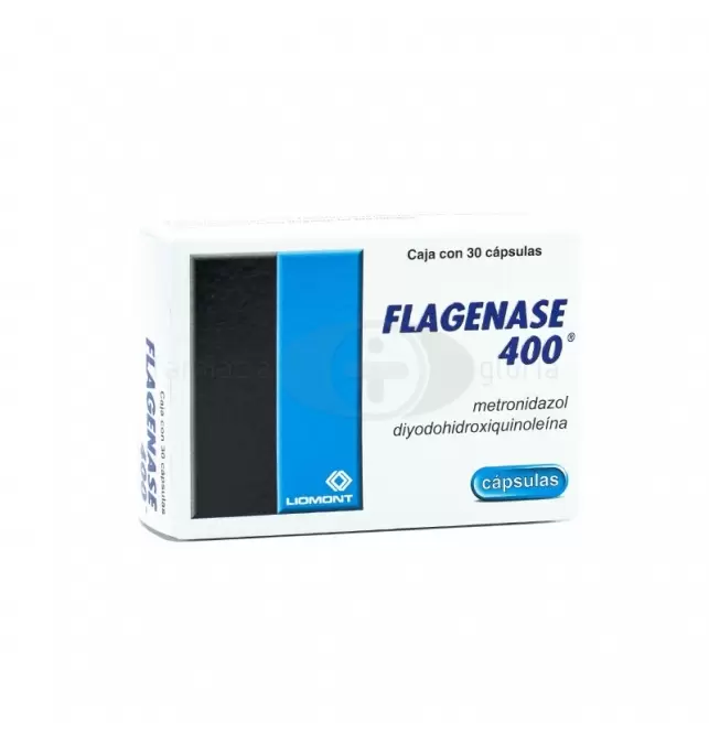 ¿Para que sirve Flagenase 400? Es un tratamiento eficaz contra la amebiasis (una infección causada por amebas, parásitos que afectan el intestino y otras áreas), tanto dentro como fuera del intestino. Combina diyodohidroxiquinoleína (un compuesto que elimina organismos infecciosos en el intestino) con metronidazol, que actúa contra la ameba en áreas intra y extraintestinales (dentro y fuera del intestino). Es especialmente útil para tratar abscesos hepáticos (infecciones en el hígado) causados por amebas, asegurando una acción completa contra esta infección.