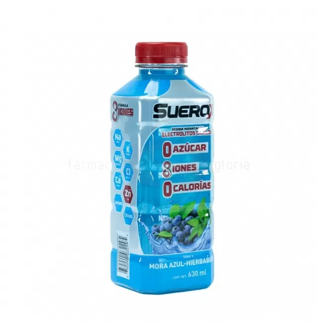 ¿Para qué sirve Suerox 8Iones Sabor Mora Azul-Hierbabuena De 630 Ml? Se utiliza para rehidratación oral, ayudando a reponer líquidos y electrolitos perdidos por sudoración, diarrea, vómito o actividad física intensa.