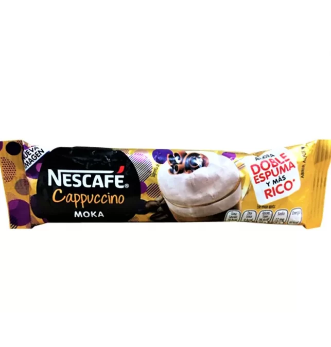 Disfruta de una experiencia gourmet en cualquier momento con el Nescafé Cappuccino Moka. Este sobre individual de 22g ofrece la combinación perfecta entre el intenso aroma del café premium y un delicioso toque de chocolate, creando una bebida equilibrada con una capa de espuma abundante y cremosa que deleitará tus sentidos.