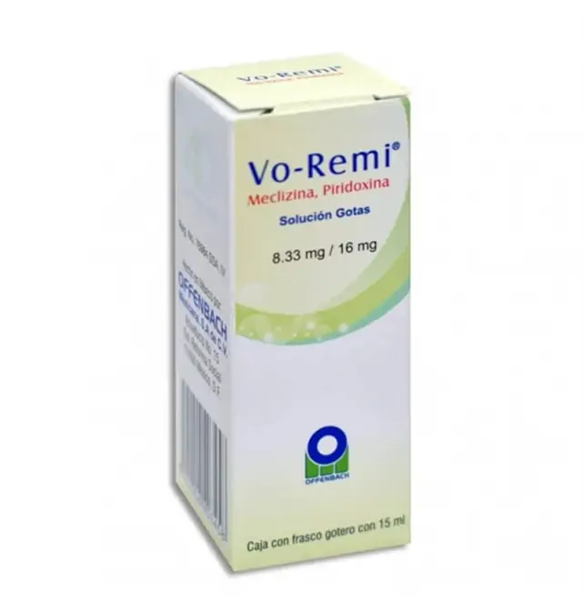 ¿Para qué sirve Vo-Remi 8.33/16 mg solución gotas con 15 ml? Este medicamento combina meclizina y piridoxina (vitamina B6), y se utiliza para prevenir y tratar el mareo (mareo cinético), así como las náuseas y vómitos que suelen acompañar al vértigo o problemas del oído interno. La meclizina ayuda a controlar la sensación de mareo y vértigo, mientras que la piridoxina contribuye a reducir las molestias digestivas relacionadas. Al ser en gotas, está especialmente indicado para facilitar la administración en niños y personas que prefieren no usar tabletas.