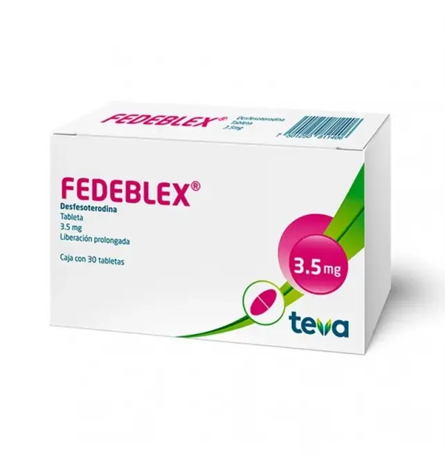 ¿Para que sirve Fedeblex 3.5 Mg? FEDEBLEX 3.5 mg está indicado para el tratamiento de la vejiga hiperactiva, un trastorno que se manifiesta con síntomas como aumento en la frecuencia urinaria, urgencia repentina de orinar y/o incontinencia urinaria de urgencia. Su principio activo, la desfesoterodina, actúa relajando los músculos de la vejiga, ayudando a reducir estos episodios y mejorar la calidad de vida de los pacientes que los padecen.