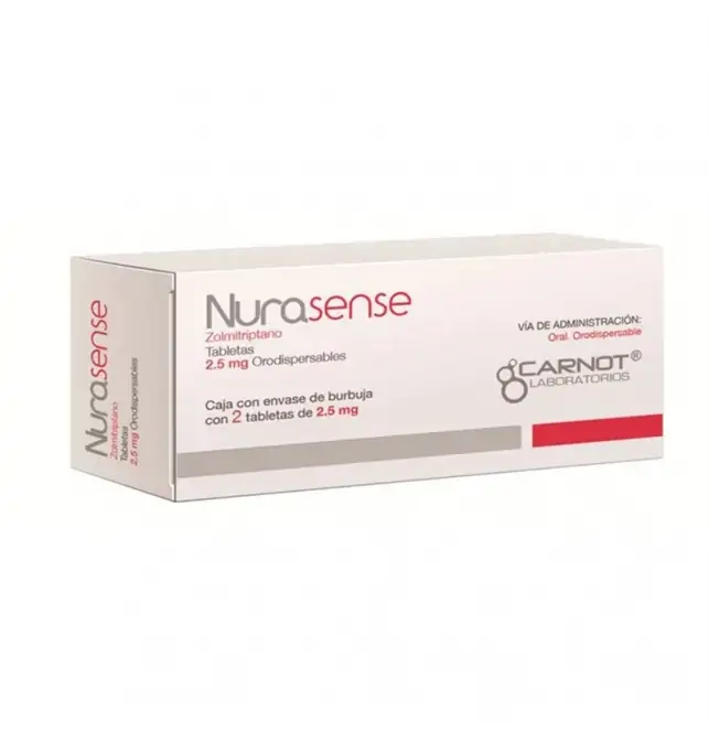 ¿Para qué sirve NURASENSE 2.5 mg con 2 tabletas? NURASENSE está indicado para aliviar los episodios de migraña, tanto si vienen acompañados de aura (esas alteraciones visuales o sensoriales que a veces aparecen antes del dolor) como si no. Es un tratamiento de acción rápida que ayuda a disminuir el dolor intenso de cabeza, así como los síntomas que lo acompañan (como náusea, sensibilidad a la luz o al sonido).