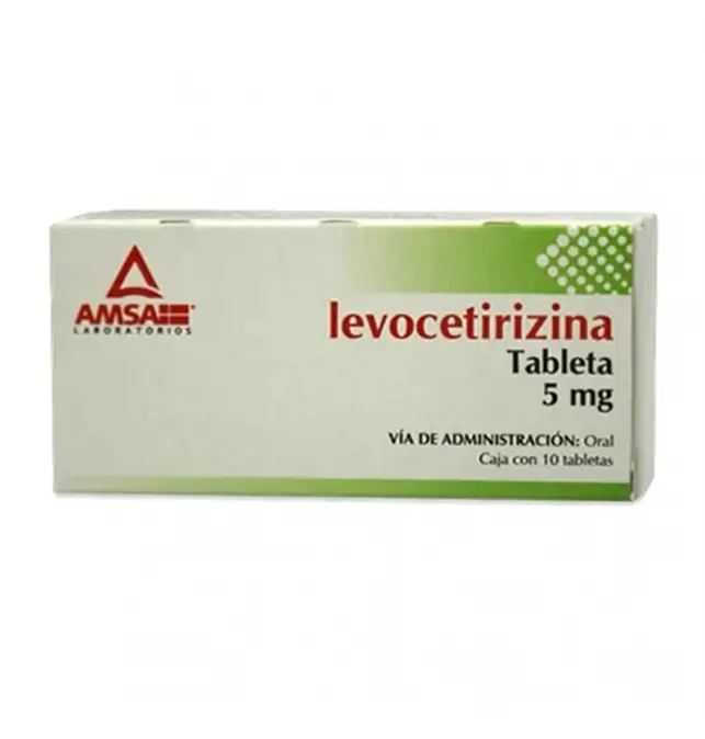 ¿Para qué sirve Levocetirizina 5 mg (10 tabletas AMSA)? Este medicamento es un antihistamínico que ayuda a aliviar los síntomas de la rinitis alérgica perenne, como estornudos, secreción nasal o picazón, así como la urticaria, que provoca enrojecimiento y comezón en la piel. Su acción reduce la respuesta del organismo ante las alergias, mejorando el bienestar y la calidad de vida.